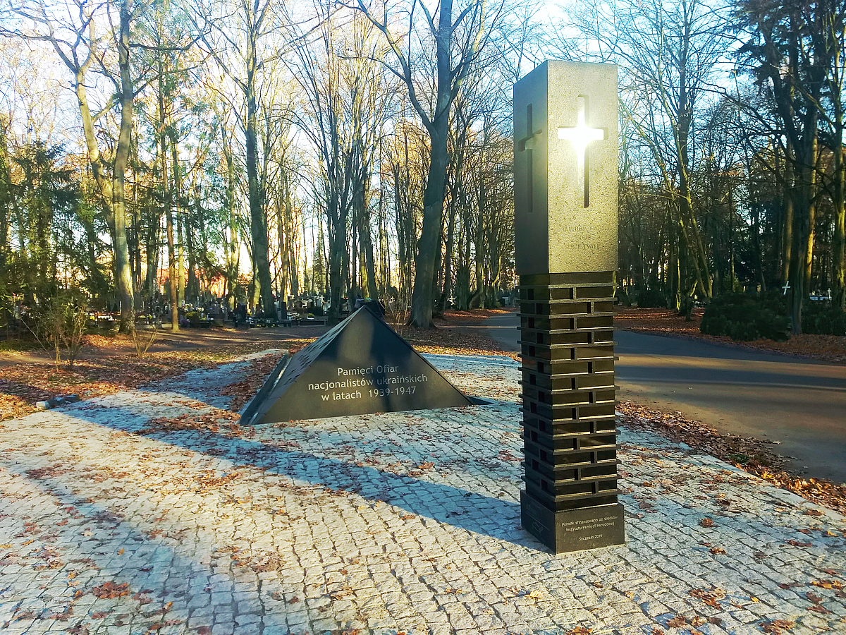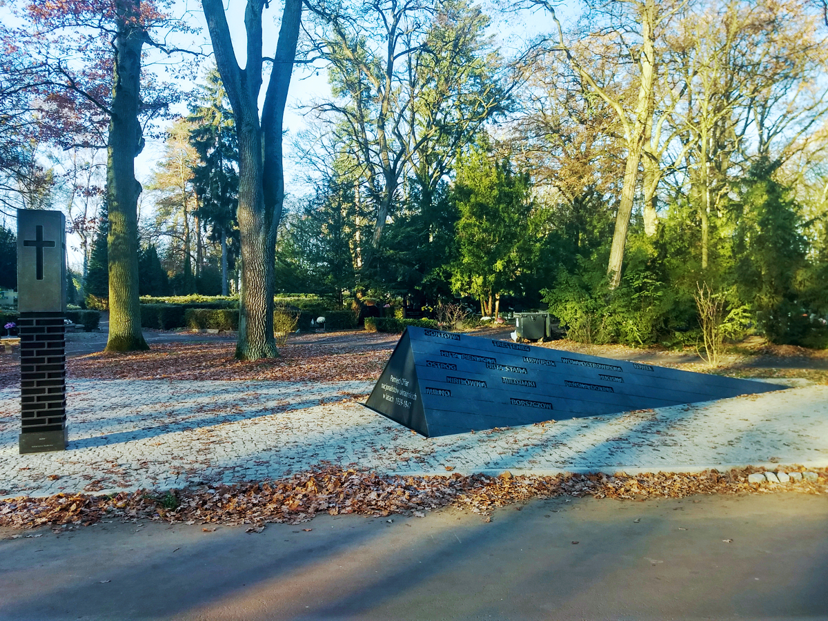W południowo zachodniej części cmentarza, przy alei Górnej, na przeciwko Rzeźby św. Jerzego ze smokiem, znajduje się pomnik upamiętniający obywateli polskich różnych narodowości (ukraińskiej, żydowskiej, ormiańskiej, rosyjskiej, niemieckiej, czeskiej, itd.) zamordowanych w ramach czystki etnicznej na Ukrainie w latach 1939-1947 przez nacjonalistów ukraińskich. Składa się z dwóch części: słupa wolnostojącego z krzyżem (tzw. kapliczki – symbolizującego kapliczkę przydrożną i komin spalonego domostwa), oraz pomnika głównego przypominającego w swojej formie dach budynku zagłębiającego się w ziemi. Wokół pomnika zaprojektowano plac wyłożony kostką granitową dla ruchu pieszych. Pomnik posiada bogatą symbolikę.