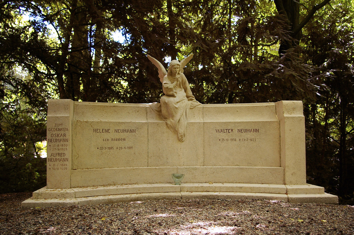 Upamiętnia miejsce spoczynku zmarłych z rodziny Neumann w tzw. gaju urnowym. Modernistyczny z elementami neobaroku, powstał ok. 1916 r. w nieznanym warsztacie niemieckim. Po II wojnie światowej przewrócony i uszkodzony, ponownie ustawiony w 2001 r. Wykonany z piaskowca przy użyciu technik kamieniarskich i rzeźbiarskich (wym. wys.180 cm x szer.330 cm x głęb. 185 cm) Pomnik w formie ustawionej na dwóch stopniach szerokiej ścianki o półkolistym narysie ujętej po bokach rodzajem słupów, które - analogicznie do ścianki - zakończone są od góry wklęsłym profilem. W zwieńczeniu nagrobka na osi kompozycji zachowana fragmentarycznie pełnoplastyczna figura anioła - brak głowy, rąk, prawego skrzydła i fragmentu lewego. Na nagrobku napisy, wykonane wklęsłym liternictwem, majuskułą jednoelementową. Na lewym słupie: „ZUM GEDENKEN/OSKAR NEUMANN/15.8.1899/+27.9.1928/ALFRED NEUMANN/ *8.2.1889/+16.11.1929”. Na ściance czołowej pomnika: po lewej „HELENE NEUMANN/GEB. RABOW/*22.3.1865 +20.4.1915”, po prawej „WALTER NEUMANN *25.10.1858 +23.2.1923”.