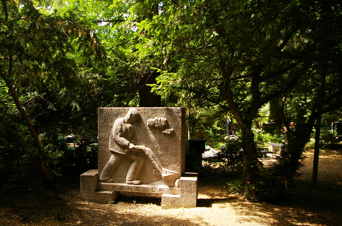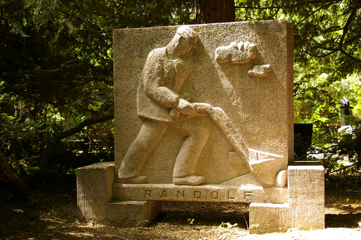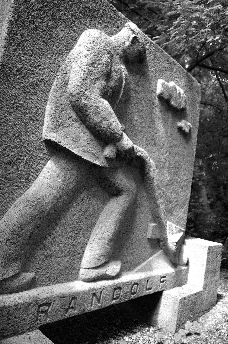 Modernistyczny, będący dziełem nieznanego warsztatu niemieckiego z lat 30. XX w. Wykonany z betonu w technice odlewu o wym. wys. 165 x szer. 205 x gł. 60 cm. Jest to stela nagrobna w formie sześciennej płyty, ustawionej na dwóch podporach. Na ścianie czołowej płaskorzeźbiona postać oracza, ukazanego z prawego profilu. Sylwetka mężczyzny lekko przechylona do przodu, nogi w wykroku, głowa nieco pochylona, widoczna prawa ręka wsparta na rękojeści pługa. Oracz ma na sobie prosty surdut i spodnie, a na głowie kaszkiet z daszkiem. Rękojeść pługa esowato wygięta, zakończona lemieszem. W prawym górnym rogu kompozycji – dwa niezidentyfikowane elementy (chmury?). Wzdłuż dolnej krawędzi płyty wykonany majuskułą napis „RANDOLF”.