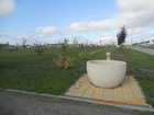 panorama Cmentarza Centralnego. Na pierwszym planie fontanna, w tle kaplica